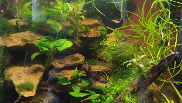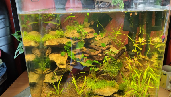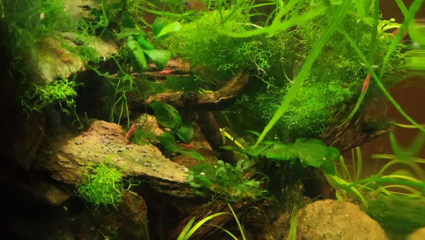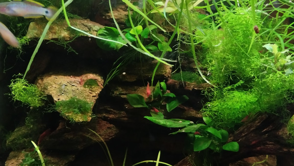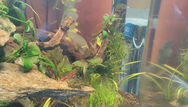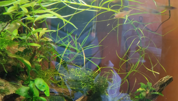 Cube 90l population 18 Pseudomugil luminatus.un trio de tateurdina.ca pousse lentement mais sûrement le varech et plantes tapissantes sont nettoyés par les crevettes.