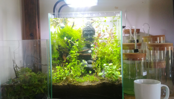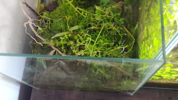 Coups de machette dans la jungle. On fait de la lumière pour l'hemiantus cuba. Bon ne vous inquiétez pas je vais replanter la plupart de ce que j'ai coupé ! J'ai enlevé pas mal de hardscape pour avoir plus de surface plantable. D'ailleurs au sujet de la gazonnante et de sa réputation de plante sauteuse. Pourquoi ne fait-on pas comme pour la mousse ? Pourquoi ne pas la fixer à une grille ?