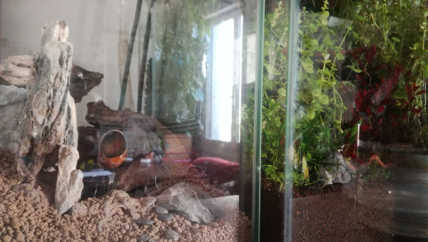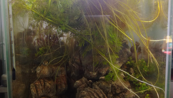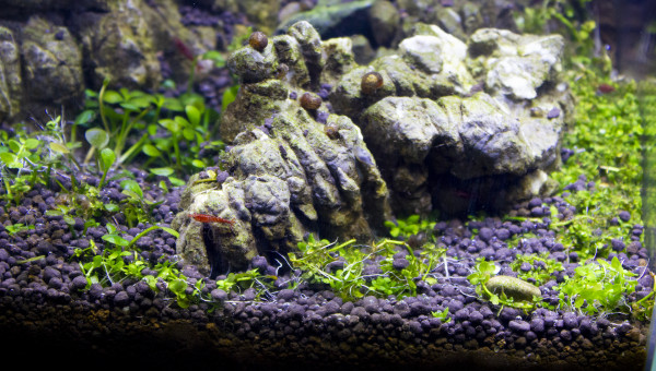 Des news du nid. Après la traversée de la France, le sandwich MonteCarlo, les pannes de filtre, de Co2 et des départs en vacances. Je me suis enfin occupé de ce petit bac convenablement. Bon les plantes, c'est pas encore ça, mais il a morflé ^^ Petit réarrangement pour monter plouhaaaaaaaaaaaaut !!! (pardon) Et ajout d'un peu de sol tech. Bienvenue aux crevettes déclassées (ou pas déclassées parce qu'il y en a que j'aime bien là dedans mais qui ne sont pas des redfires). Et aux planorbes parachutés, un festin d’algue sur roche les attend ! :)