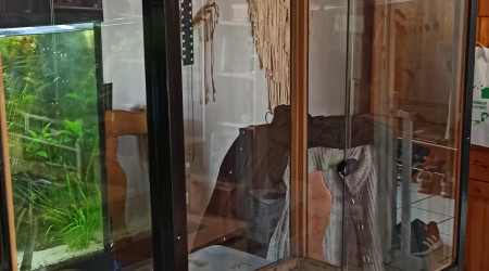 Achat d'une vitre couvrant le toit du terra. Comme j'ai une mémoire de poisson rouge, j'ai omis le fait que nous avons fixé les buses de la brumisation sur le grillage de la porte de toit. Du coup, ça ne colle pas tout à fait... Bref, la vitre a tenu 3 jours avant de fissurer puis de casser franchement. La chaleur générée par l'ampoule céramique a eu raison d'elle. J'avais pourtant bien demandé au vitrier si avec 5 mm d'épaisseur elle tiendrait la chaleur...