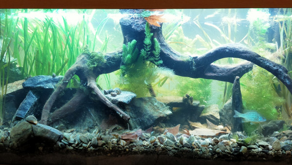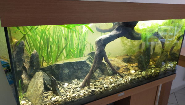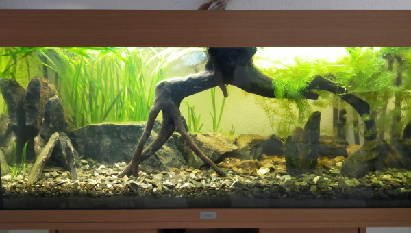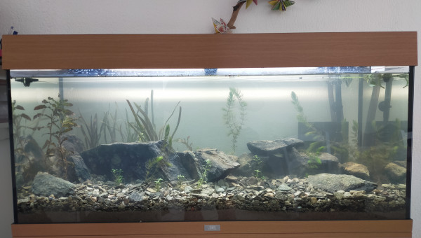 Aquarium JUWEL RIO 180l. - 101cm de façade En cours de cyclage... Hardscape : Roches, graviers et sable récoltés dans une rivière du massif du Pilat (42) Racine type mangrove (récup) Valisneria spiralis "sauvage" et locale. Très belle souche et très prolifique. Prélevée dans le Rhône (38) Ceratophyllum demersum. Également prélevée dans le Rhône. Très prolifique. Myriophillum sp. , Là encore prélevée dans le Rhône. Croissance certaine mais développement moins rapide que les deux espèces précédentes. Lentilles d'eau, Lemna minor, prélevée dans le Rhône. Spyrodela polyrhiza à venir. Bon développement. A suivre ?