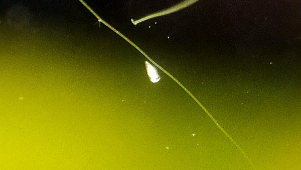 Quelques news de mon bac. Alors, après un bac grouillant d'alevins de Lepomis gibbosus il y a environ 1 semaine (ça grouillait vraiment) et le retrait du bac de la grosse femelle et du deuxième mâle non concerné par la repro, chaque jour j'ai vu (avec soulagement ?) la densité d'alevins baisser de jour en jour. Depuis dimanche soir, plus un seul alevin à l'horizon... Mon analyse... Même si c'est pas une découverte, le mâle protège et ventilé les œufs et alevins tant qu'il reste au "nid". Dès que la dispersion commence, le cannibalisme bien connu de cette espèce reprend le dessus, en quelques jours le "papa" a bouffé tous ses gosses ?. Je pensais pas que ça irait aussi vite mais je suis pas étonné non plus. Pour être tout à fait limpide et pour rassurer les âmes sensibles, je n'avais pas comme projet d'aider ces alevins à grandir, je n'aurais juste pas envisager qu'une fois le "nid" quitté ça irait aussi vite. Je me suis quand même demandé si c'était bien le "papa" qui avait tout boulotté ou si c'était la qualité de l'eau qui était fautive. Mais d'une part les paramètres après contrôle restent stables, j'ai longuement observé ces alevins se nourrir et "grandir" de jour en jour, et j'ai vu la mâle en boulotté un paquet. Pour vérifier que ce ne sont pas les paramètres de l'eau qui posaient problème (j'avais peu de doute, vu que ponte, éclosion et nuage de nouveau nés au nid se sont bien passé, stade les plus "sensibles") j'ai introduit trois alevins/juvéniles de poissons blancs (plus fragiles à priori) dans le weekend et ils sont toujours là et se nourrissent très bien. Donc exit la question sur la qualité de l'eau. Le mâle a juste bouffé tous ces gosses dès que la dispersion a commencé (c'est pas une découverte, c'est connu), il ne les protège que jusqu'à un certain stade, après bébé devient proie. Je suis content de l'avoir observé et vérifié, mais que ça soit clair pour ceux qui pourrait légitimement s'en émouvoir, on parle de la perche soleil, le but n'est pas de les multiplier, elle y arrive parfaitement sans moi et qu'aurais je fais de centaines d'individus de cette espèce (a part les congeler pour ensuite les donner aux fourmis) ? Donc j'ai libéré le "papa" qui était bien seul dans le bac et j'y ai remis 5 juvéniles (moins de 5cm) de la même espèce, histoire que le bac soit vivant. Je vais rapidement passer à 3 je pense ou a zéro si j'arrive à capturer les petites crevettes locales que je cherche. Mais ce matin au réveil, ma surprise accompagnait mon brossage de dents. Une de ces petites perches, d'environ 4 a 5cm, avait pris les couleurs des mâles en rut ? et nettoyait son nid/territoire et le défendait farouchement. Ça corrobore parfaitement les études menées sur cette espèce dans les eaux réchauffées, la maturité sexuelle peut arriver dès la première année. C'est marrant et intéressant à voir, il cherche les petites femelles qui elles semblent encore en être au stade adolescentes et pas prête à copuler. Je compte sur vous pour prendre le recul nécessaire sur l'anthropomorphisme dont je fais preuve dans ce récit. Sinon, et bien moins d'alevins (y a t'il un lien direct ?) rime clairement avec explosion des ostracodes, pour mon plus grand plaisir. Excusez la qualité des images ci-jointes, c'est fait avec téléphone+loupe. Suite au prochain épisode ?