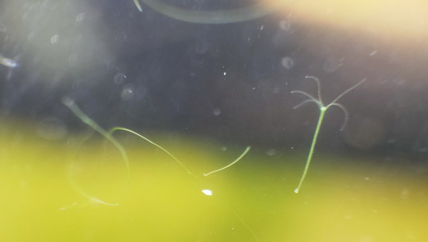 J'avais un vrai doute sur la possibilité de voir mes Spirodela polyrhiza se développer dans mon bac face à l'explosion exponentielle de sa petite cousine Lemna minor... Grande joie après seulement 10 jours, elles ont l'air de se plaire. 1ere photo = introduction, 2eme photo = aujourd'hui (j+10)... Trop content. Du coup ce soir, gros ménage sur les Lemna minor, par grosses poignées. Indispensables au commencement de mon bac, l'idée de départ était de les suplenter par leur grande cousine, pour plein de bonnes raisons. Ayant enfin réussi à en trouver il y a 10 jours, l'heure est venue d'enclencher l'histoire vu qu'elles se plaisent ici.