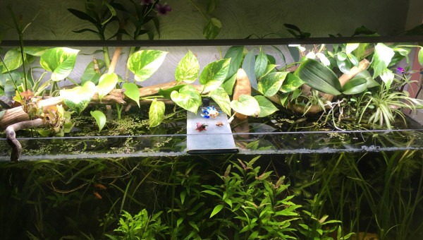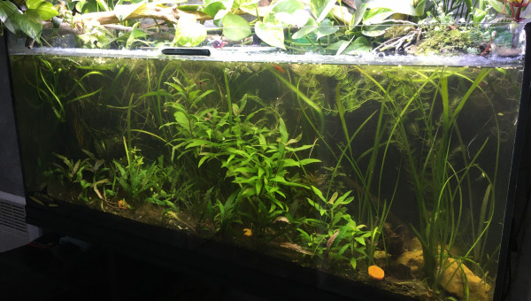 Passage en low tech en 2015 avec suppression du filtre et plantation +++ en immergée et flottantes, trempettes !! Population : famille xypho hellery, une profusion de red cherry, melanoides, physes et planorbes roses ! Plantes immergées : hygrophila polysperma et corrymbosa, vallisneria, cryptocoryne. Plantes en trempette et flottantes : ceratophillum et lentilles. Spathyphillum, anthurium, dieffenbachia, avocat, ficus ginseng, papyrus, lierre, pothos, patate douce, broméliacées, phalenopsis, dendrobium, impatience de nouvelle Guinée.