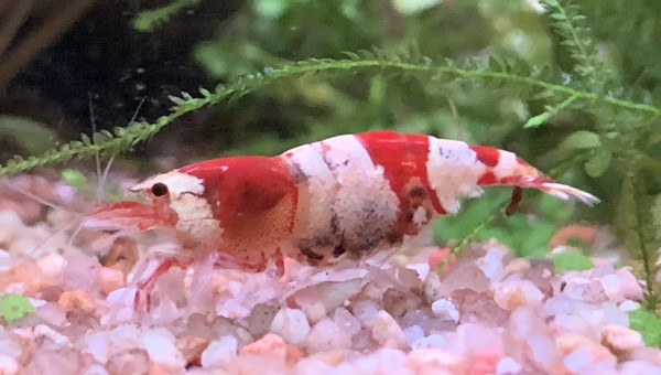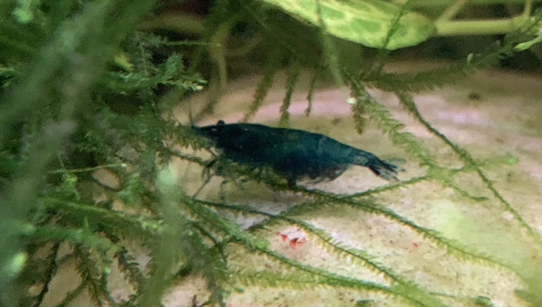 à peine 3 semaines après leur introduction, j'observe une première Neo Caridina grainée. Elles ont commencé à fricoté beaucoup plus rapidement que les Red Crystal qui avaient mis plus d'un mois pour observer la première grainée.
