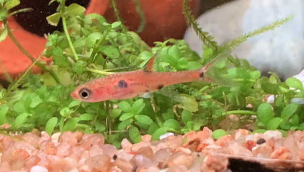 Observation de 3 juveniles simultanément (jusqu’à maintenant je n'en avais vu qu'une à la fois) Deux grainées en attente dont une qui devrait relâcher d'ici la semaine prochaine je pense. Malgré la population du bac (tanichtys et boraras maculatus) il semblerait que quelques juveniles arrivent à faire leur vie :)
