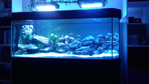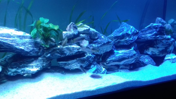 Voici mon bac de 700 litres peuplé de cichlidés du malawi.