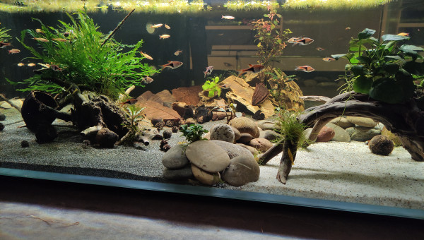 200L brut - 140L net. Ce compose de crevettes Amado (X3) , crevette neo-caridina (x15), escargot (X10), Rasbora Arlequin (x15) et néon chinois doré (x15).