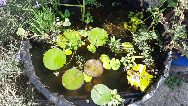 Projet de mettre quelques guppys pour éviter les larves de moustiques.