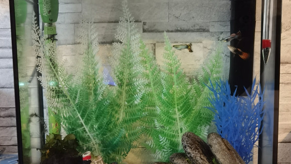 achat de l'aquarium le 28/01, préparation le 5/02 et achats des 3 premiers guppys le 8/02