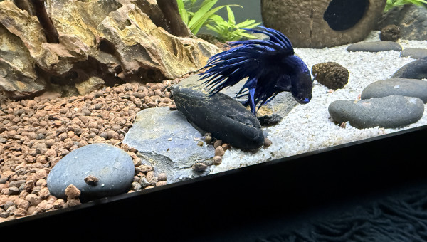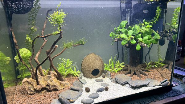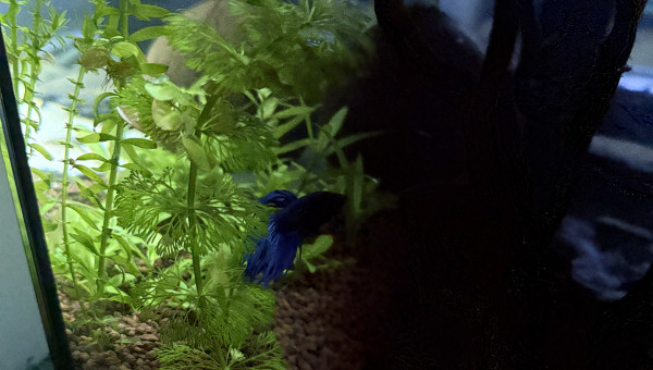 Bonsoir , j avais mis mon betta dans un 30 litres mais je trouvais que c’était un peu petit.Du coup , le cyclage de mon 60 litres étant fini voici son nouveau chez lui.