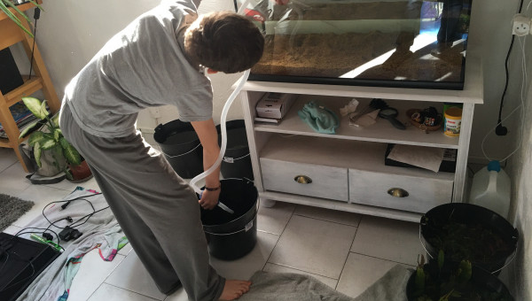 L’aquarium est vidé aujourd’hui car il fuit … Mon fils et moi essayons de tout récupérer pour tout remonter dans le nouveau (meme modèle, mais neuf)