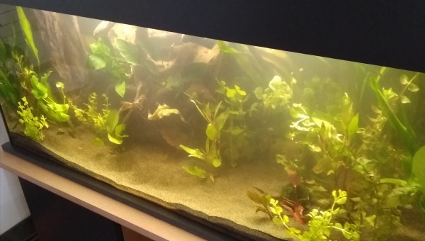 Cet aquarium n'a pas encore de poissons,mais il contiendra un couple de gouramis nains,2 ancistrus dont un ''gold'',8 silure de verre et 7 rasbora arlequins, il y a aussi des crevettes amano et peut être un loricaria a venir...
