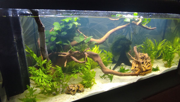 Aquarium planté le 16mai, sol aquabasis+ et sable sansibar Projet : 10 néons bleu 10 crevettes bleues 8 corydoras leopard