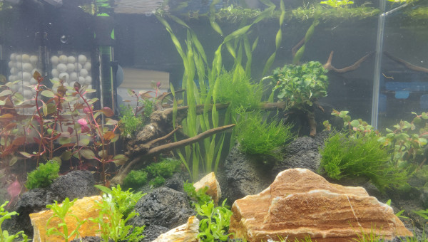 Bonne surprise cet après midi en retirant la Vallisneria de l'aquarium, un nouvel occupant dans le bac. J'ignore quel age il , mais il est déjà relativement grand, en comparaison des 2 cm des parents, il doit faire 6/7 mm. Ça m'a mis de bonne humeur pour attaquer la nouvelle semaine.