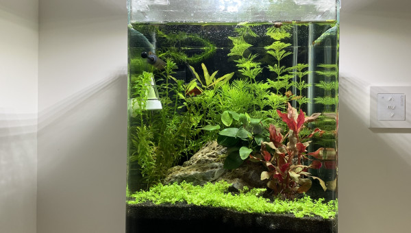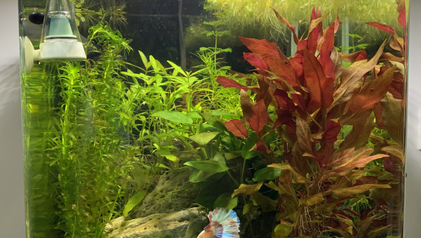 Modification du filtre d’origine: retrait de la cartouche de perlon que j’ai remplacée par des billes fritées (dans un filet ... plus facile pour les nettoyages) , j’ai conservé la mousse noire en bas du filtre et j’ai ajouté une mousse bleue en haut du dispositif. Le but est de multiplier les supports pour les bactéries.