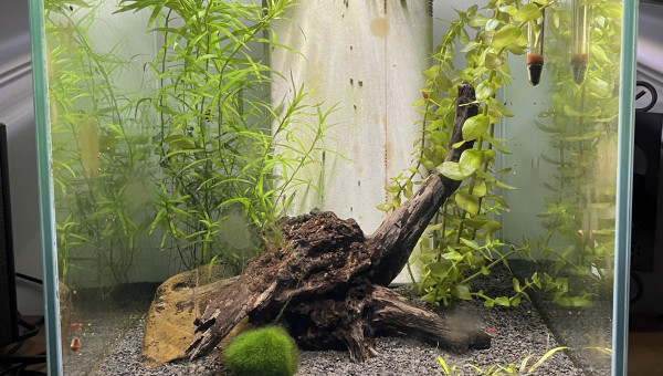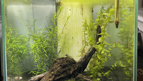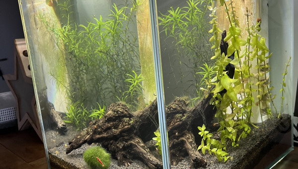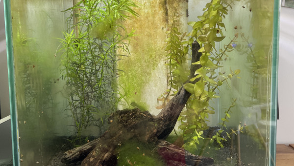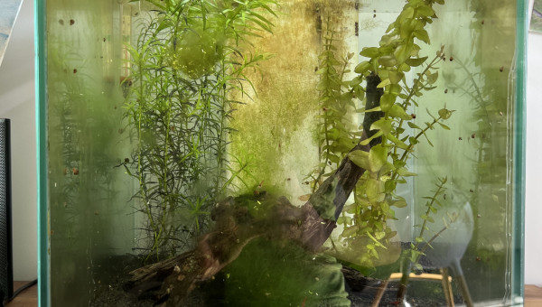 1. Retirer lentilles et algues 2. Taille des plantes / boutures 3. Nettoyage des vitres au perlon 4. Vidange 6L 5. Rinçage des mousses bleues / remplacement du perlon 6. Remplissage eau