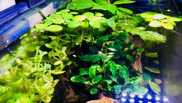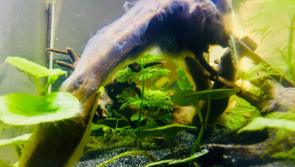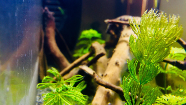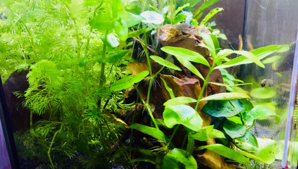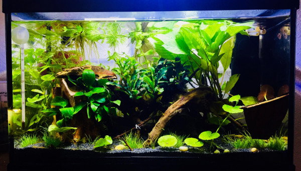 Bac récupéré il y a plus d'1 an, je ne l'utiliser pas et j'ai enfin décidé de me lancé dans l'aquariophilie il y a peut, en commençant avec des crevettes naines Neocaridina red cherry ( que je n'ai pas encore ^^ ) ! Actuellement le 02/06/19 je suis encore en cyclage, j'ai juste une pompe a eau / filtre qui était avec le bac que j'aimerais ensuite enlevé pour laisser le bac sans rien, ni filtre ni co2 rien du tous ^^ Juste avec les plantes et les crevettes ! Je ne connais pas le nom des plantes, j'ai essayé de trouver en fonction de photos sur le forum ou le net ! Il y a 2 morceaux de feuilles de catapa ! J'y est placé du sable JBL en substrat ainsi que quelques branches / racines araignées, j'attend encore quelques pierres de type okho stone pour compléter le décors ainsi que d'autres plantes ! L e bac n'est pas chauffer, seulement a temperature ambiante juste au dessus de l'un de mes terrarium, temperature de 24 /26 degrés max dans l'eau !
