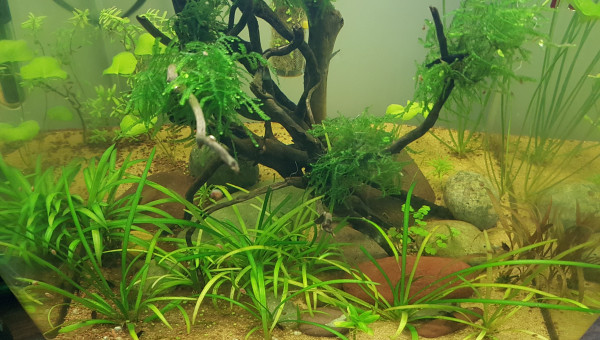 Je rencontre des difficultés avec la weeping moss. Au début c'était sympa puis au fur et à mesure des mois ça devient n'importe quoi... j'en viens à la détester et à avoir envie de la retirer... J'ai beau eu la coller ou la ficeler bon nombre de fois, impossible de la faire tenir sur les racines, elle ne s'accroche pas d'elle même, ça tombe sans arrêt et s'eparpille partout dans le bac, ça fait dégueulasse et c'est difficile a retirer vu qu'elle va s'entremêler aux sagittarias. Au final, au bout d'un peu plus d'un an, obligée de faire une pseudo boule que je cale dans les branches et en plus de se casser la gueule sans arrêt, c'est très moche.