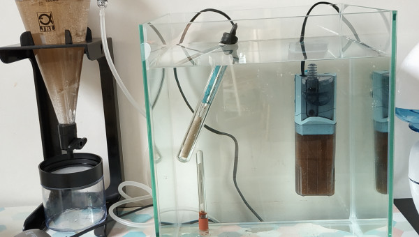Quand je vous disais que le survivant (j+12) de ma portée de Ramirezi aurait droit à un traitement de Pacha. Mousse de Java, approvisionnement continu en artémias, une jolie lumière réglable. Je pense que la phase critique a été le début de l'alimentation après la résorption du sac vitellin. Il aurait fallu des infusoires.