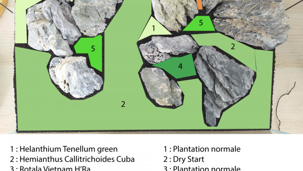 Après un peu plus d'un mois de dry start, mise en eau faite. Bilan : DSM nickel. .A rectifier, la zone de H'ra qui a une partie n'ayant pas poussé. Certains pieds ont un peu moisi visiblement. Je laisse tranquille les premières semaines pour l'adaptation à l'eau, et dès demain, CO2 quand j'aurais reçu le diffuseur. ??