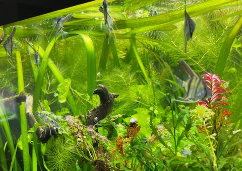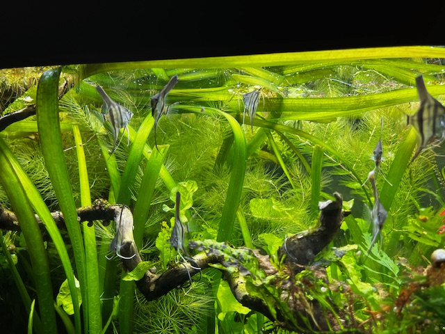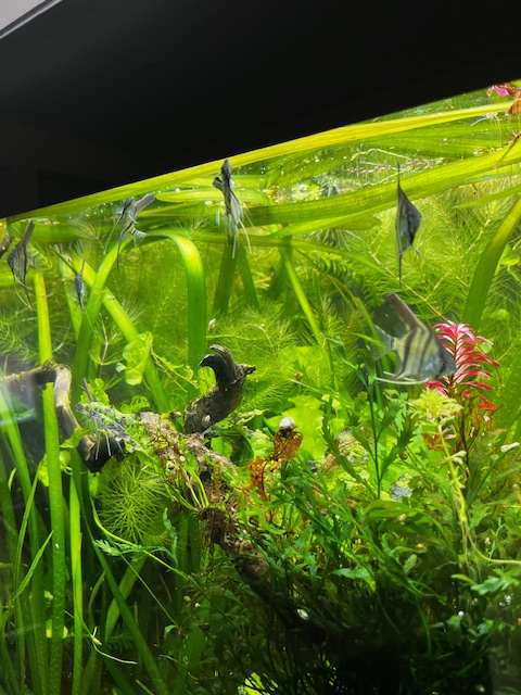 Cet aquarium de 360l net est de type "Walstad", avec filtre interne de type HMF (mousse) 'fait maison'. Pour plus d'info concernant sol et filtre > Equipements