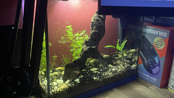 Minuscule aquarium sur mon bureau pour que les parents ne soient pas tenter d'écourter la vie de leurs petits