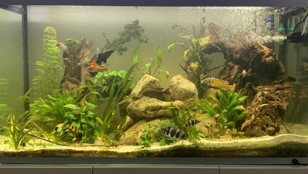 Pour répondre à question posé.. oui le bois pose problème si on ne peut pas le traiter correctement. Ici je l’ai fait bouillir en changeant l’eau très régulièrement pendant des heures dans une bouilloire de collectivité (merci papa) jusqu’à ce que tout les tannin du bois soit neutralisés. Aujourd’hui avec mon changement d’eau hebdomadaire malgré mes nombreux bois dans le bac l’eau ne vire pas au marrons.