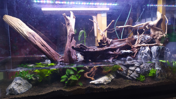 Paludarium en cours de construction, dans une cuve récupérer gratuitement et bien rayé.