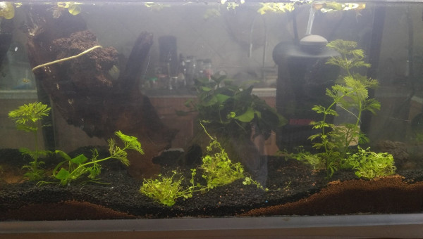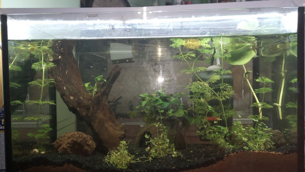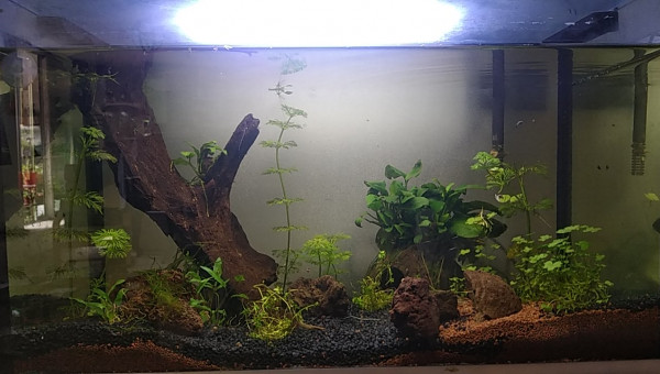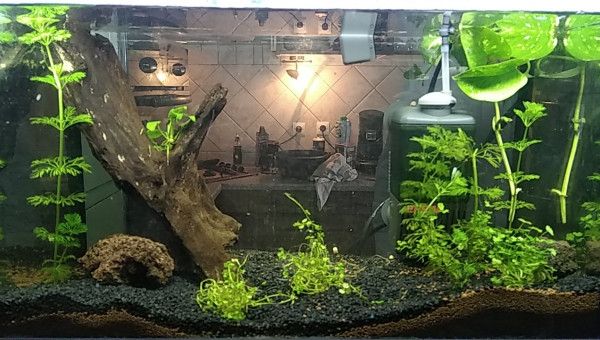 changement de 5L d'eau de l'aquarium avec de l'eau du robinet pour tenter de réduire le GH