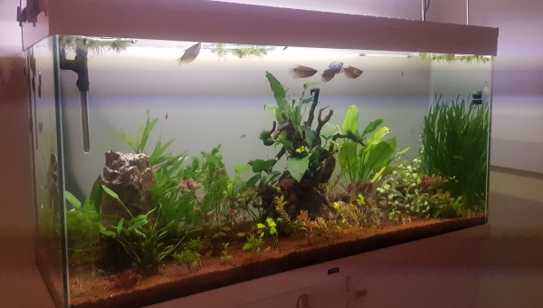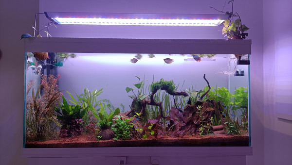 Depuis la dernière fois : -Nouvelle plante verte/rosé en avant plant. -J'ai déplacé l'egeria sur les côtés. -J'ai redescendu mon kh à 4. -J'ai installé un chauffage externe (merci la boutique fishfish). -J'ai aussi nettoyé tous les tuyaux.. sûrement le truc le plus relou - j'ai rajouté une cachette noix de coco pour les poissons