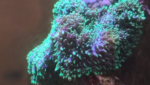 Le redressement du bac touche a sa fin . Il m'a fallu 8 mois, pratiquement le même temps de rodage d'un bac récifal. Ici on peut apercevoir que les algues inférieures sont toutes devenus marrons, elles sont en train de mourrir. Cependant, sur ce bac je lutte encore avec les algues supérieurs, plus exactement la valonia. C'est une lutte âpre et acharné. J'en retire toutes semaines et elles reviennent mais de moins en moins heureusement. Tant que la qualité de l'eau n'est pas optimum je n'arriverai pas à m'en débarrasser. C'est pourquoi c'est le seul de mes bacs que je change 10% de l'eau tout les 15 jours. Là capbella, je l'ai déplacé au 1er plan. Là bouture de sinularia a bien pris, l'élastique a tellement compressé la bouture qu'au final ça l'a séparé en deux et ça a donné 2 pieds. .