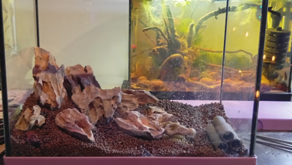 Petit bac pour écrevisses CPO reproduction avec une première fois pour moi avec des pierres Dragon stones