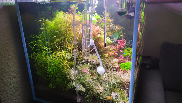 Pompe Jabeo 7 tetes + osmoseur dupla ro 270+ filtre oase 350 avec 3 litres matrix + purigen seachem+ Co2 diffuseur electrovanne bouteille 4 et 2 litres + osmolateur + 1 rampe leds WRGB chihros 600 et rampe led chihros serie a600+ commander4 programmation lumiere. Cuve aquadesigner ultra clair coupe 45