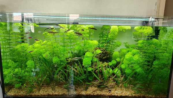 Poisson: - 4 Botia Lochachata. - 2 Gyrinocheilus Aymonieri Gold. - 2 Crossocheilus oblongus. - 2 Garra rufa. - 5 Cardinalis Paracheirodon Axelrodi. - 5 Tétra pingouin. - 4 Cardinal ou néon du pauvre. - 5 Knodus borki. - 5 Tétra Citron.