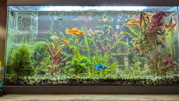 Premier aquarium en mode débutant avec des guppys, des xiphos et des mollys !