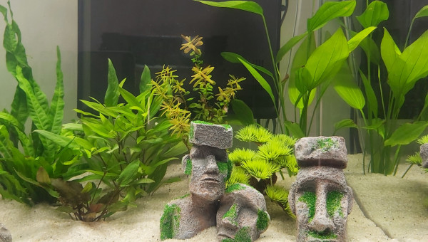 Beaucoup de changements au niveau de la déco, boutures de plantes dans tout le fond de l'aquarium faites par moi-même ainsi que de nouvelles plantes de premier plant , installation de pierres qui ont été bouillis au préalable ainsi que 2 racines qui ont été bouillis 2 fois 3 heures puis passées 2 mois en extérieur au soleil (habitant le sud) puis de nouveau bouilles 4 fois 2 heures, installation également de tubes pour cachettes puis installation d'une pompe externe et d'un nouveau chauffage ?? Je vous posterai par la suite des photos avec les évolutions des boutures dans le fond de l'aquarium pour l'évolution ?