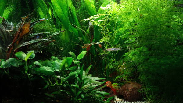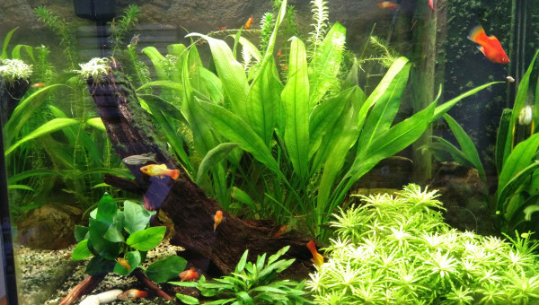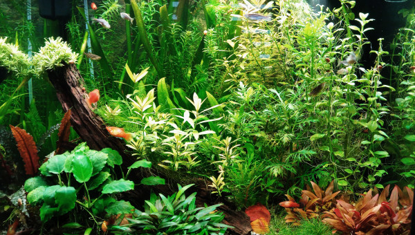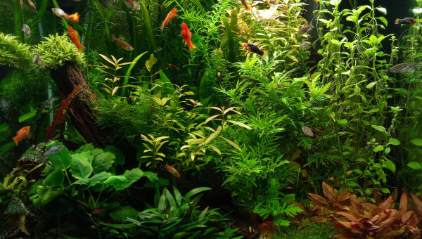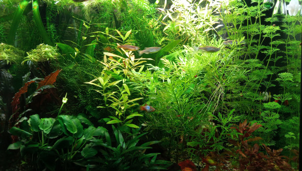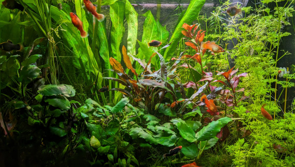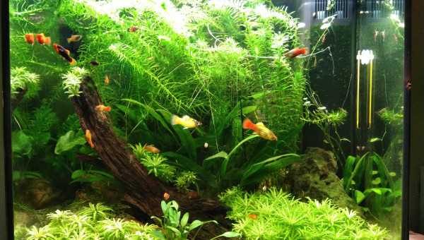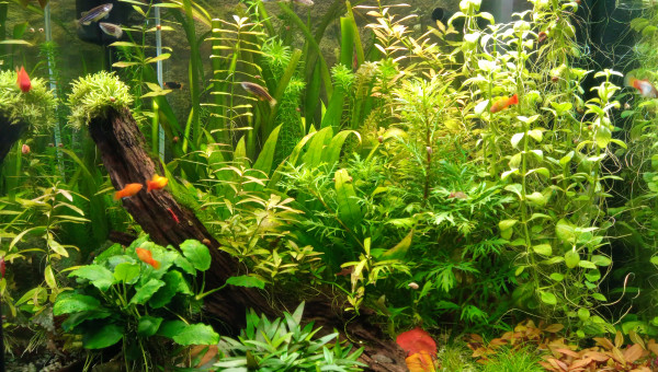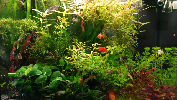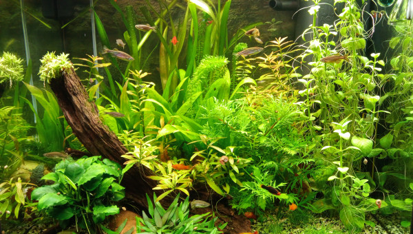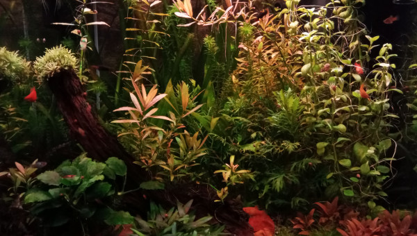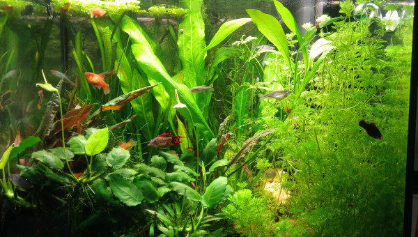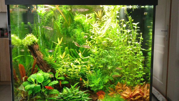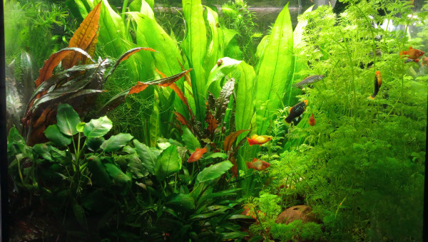 Bac communautaire de 120 L : style jungle / full eau de conduite / Platys, RC déclassées, escargots.