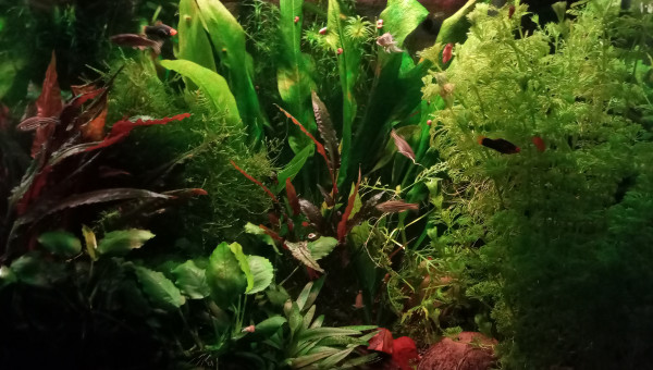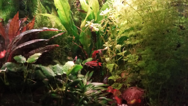 Je vais essayer de modifier ma routine de changement d'eau avec entre 1,5L et 2L quotidiens. C'est beaucoup plus simple à faire, la pompe et le chauffage restent branchés, et ça se fait avec une ou deux bouteille d'eau décantée et un pichet pour retirer l'eau vieille qui sert directement à l’arrosage. Je me dis qu'en plus, ça permet d'avoir plus de stabilité dans le bac, tout en renouvelant 40% d'eau par mois. À voir à l'usage...