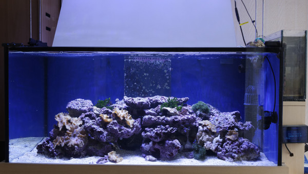 Comme tout bac au lancement pas mal de petit souci, dont le dernier avec une invasion de Dino flagélées que j'ai traité avec du Dino X de Fauna Marin, très efficace