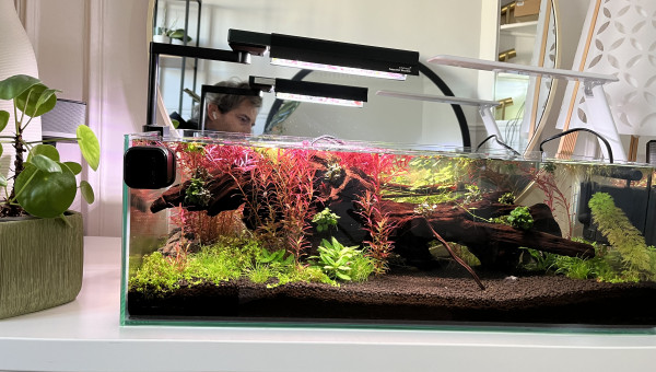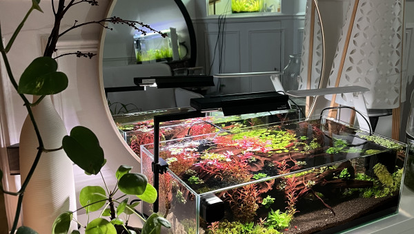 J’ai créé ce bac à la base pour remplacer un aquarium sur la cheminée, ce dernier était trop haut pour l’avoir en face de soi quand on est sur la canapé, j’ai donc installé ce bac à la place de la télé en face du canapé et je suis content