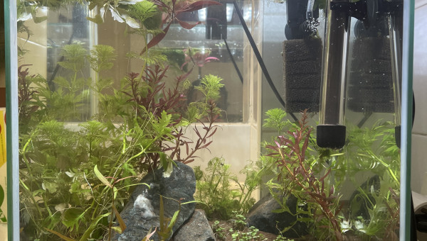 Une semaine après la mise en eau du bac, les plantes gazonnante poussent super vite