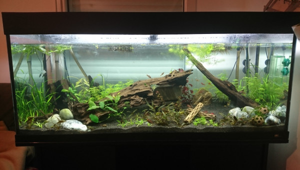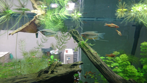 Aquarium devant accueillir un couple de trichopodus leerii et des puntius titteya. Il abrite déjà quelques crevettes neocaridina davidi de type yellow fire neon.