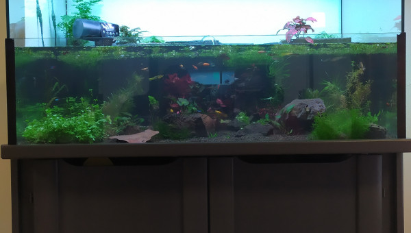 Aujourd'hui, je vous présente mon poisson paradis baptisé Pitchou par mes enfants. C'est un jeune aux couleurs pâles qui semble avoir un bon caractère. Il est très curieux de tout, et semble avoir une intelligence supérieure. Il a le ventre rond d'avoir mangé une femelle guppy malade au petit déjeuner puisqu'elle manquait à l'appel ce matin... Je suis sûr que tout le monde a eu sa part d'ailleurs...