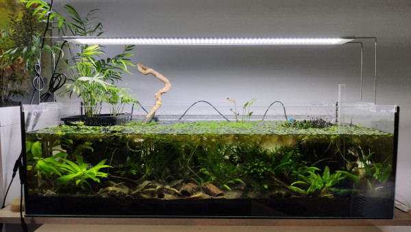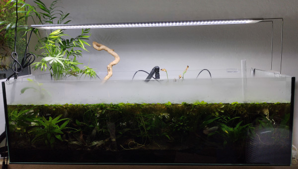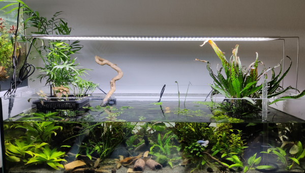 Projet riparium avec quelques plantes émergées, pour accueillir un Betta, un groupe de Pangio kuhli, éventuellement des crevettes et un groupe de nano-fish.