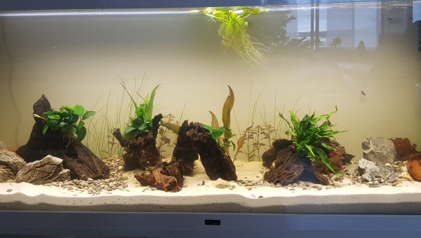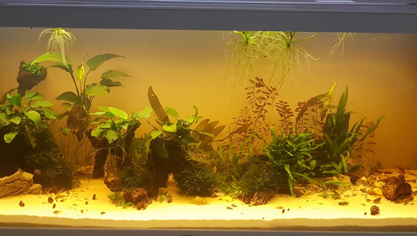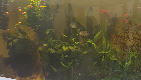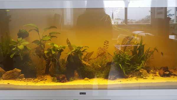 Retrait des anubias pourrissantes de chez Aqua Plante. Changement de 60L (20%) d'eau et ajout de bactéries dénitrifiantes. Je croise les doigts pour voir une différence demain...
