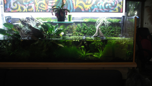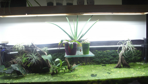 un mix entre un aquarium et un paludarium, (mais plus tourner aqua) Ce bac à pour but d'accueillir un groupe de bettas Rubra