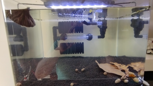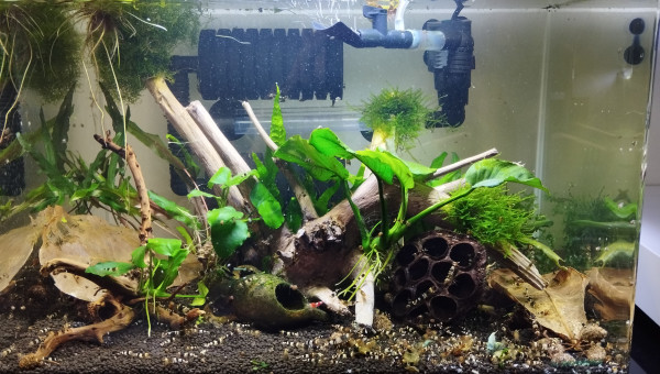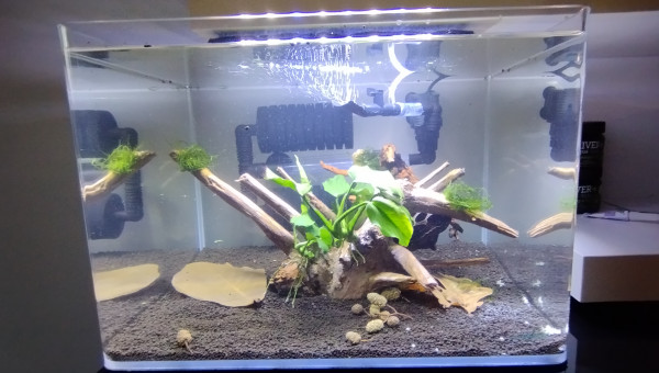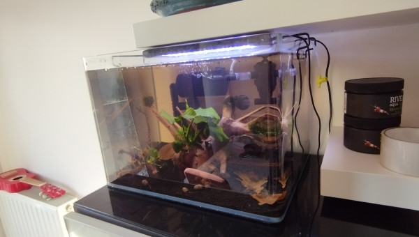Aquarium destiné à accueillir mon mix de Caridina Crystal Black, Fancy Black Tiger, King Kong full, Blue Bolt déclassées, etc.
