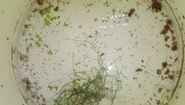 Sur les 12 alevins Fundulopanchax nigerianus innidere que devrait compter ce bac, j'en voie 6 en pleine forme.