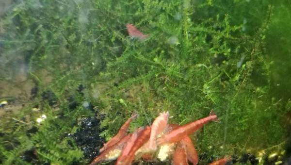 Aquarium plein planté avec guppy crevette red Cherry coridoras et poissons docteur
